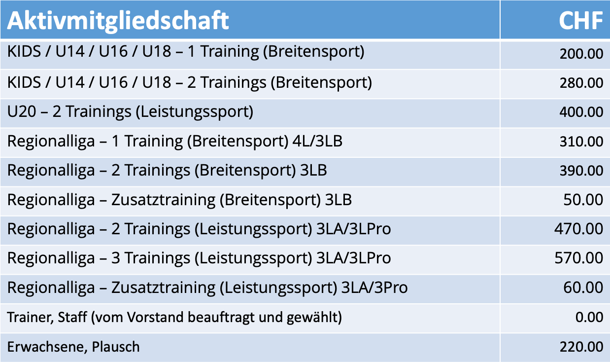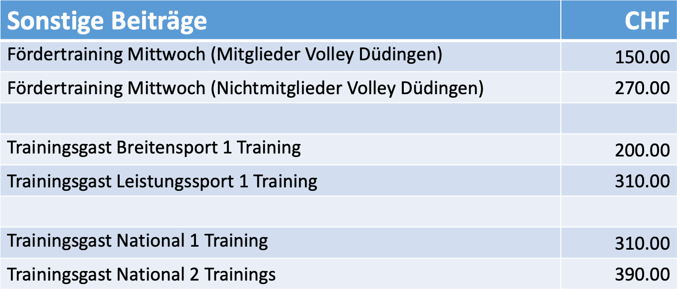 Die verschiedenen Mitgliederbeiträge werden jeweils durch die Generalversammlung von Volley Düdingen bestimmt.